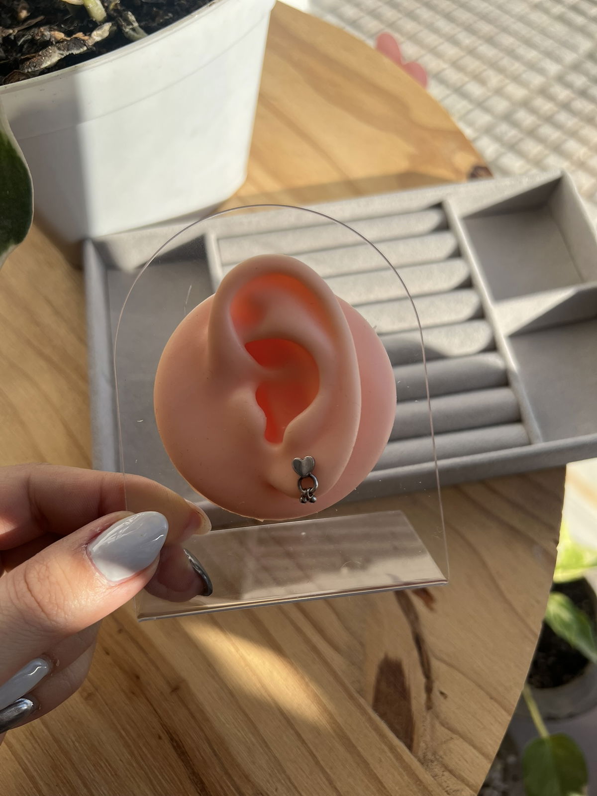 Su diseño combina una figura central con un pequeño colgante de bolitas que aporta movimiento y estilo.