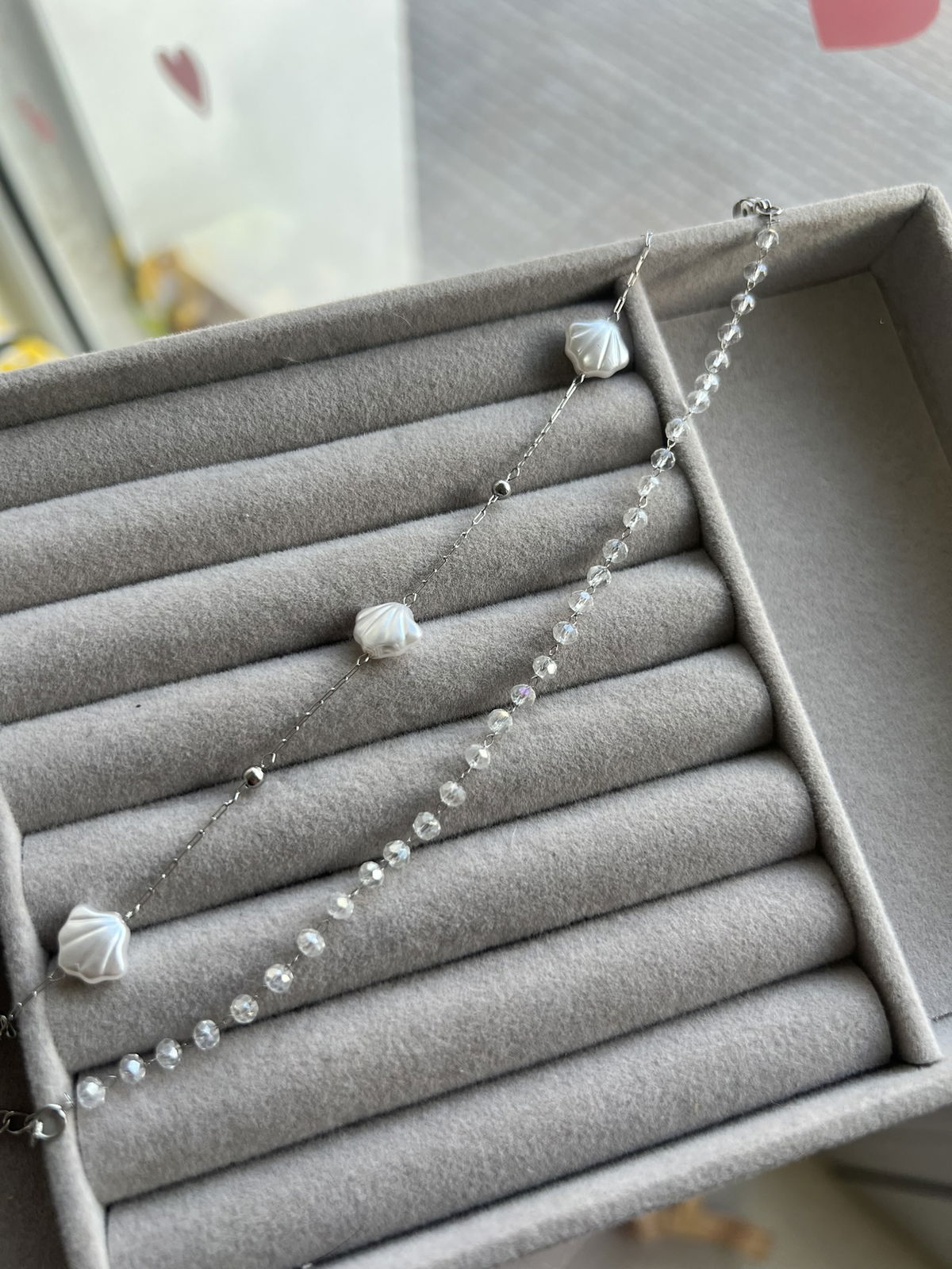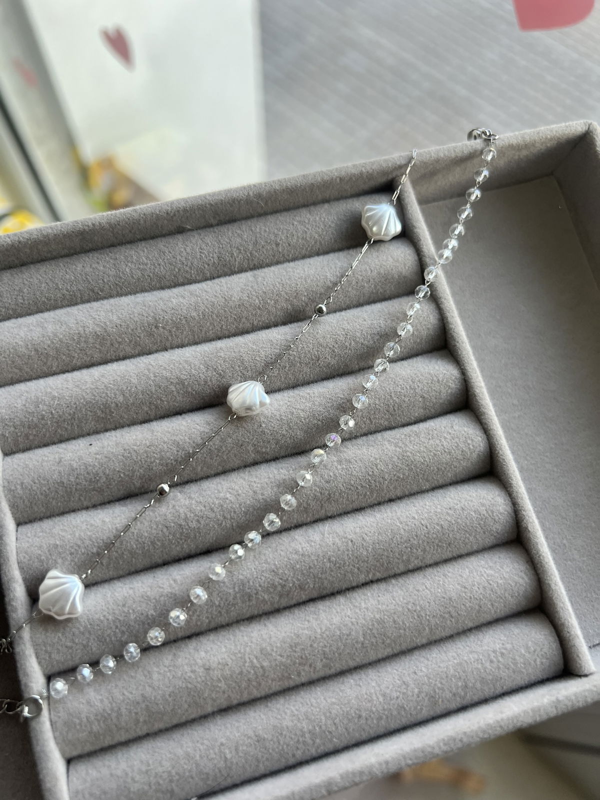 Llevá con vos la delicadeza del mar y el brillo de la luz en esta pulsera única. Su diseño combina dos hebras sutiles: una con micro-cristales facetados que capturan el brillo, y otra con pequeños caracoles de nácar que le dan un toque romántico y boho. Es el accesorio ideal para esta estación.